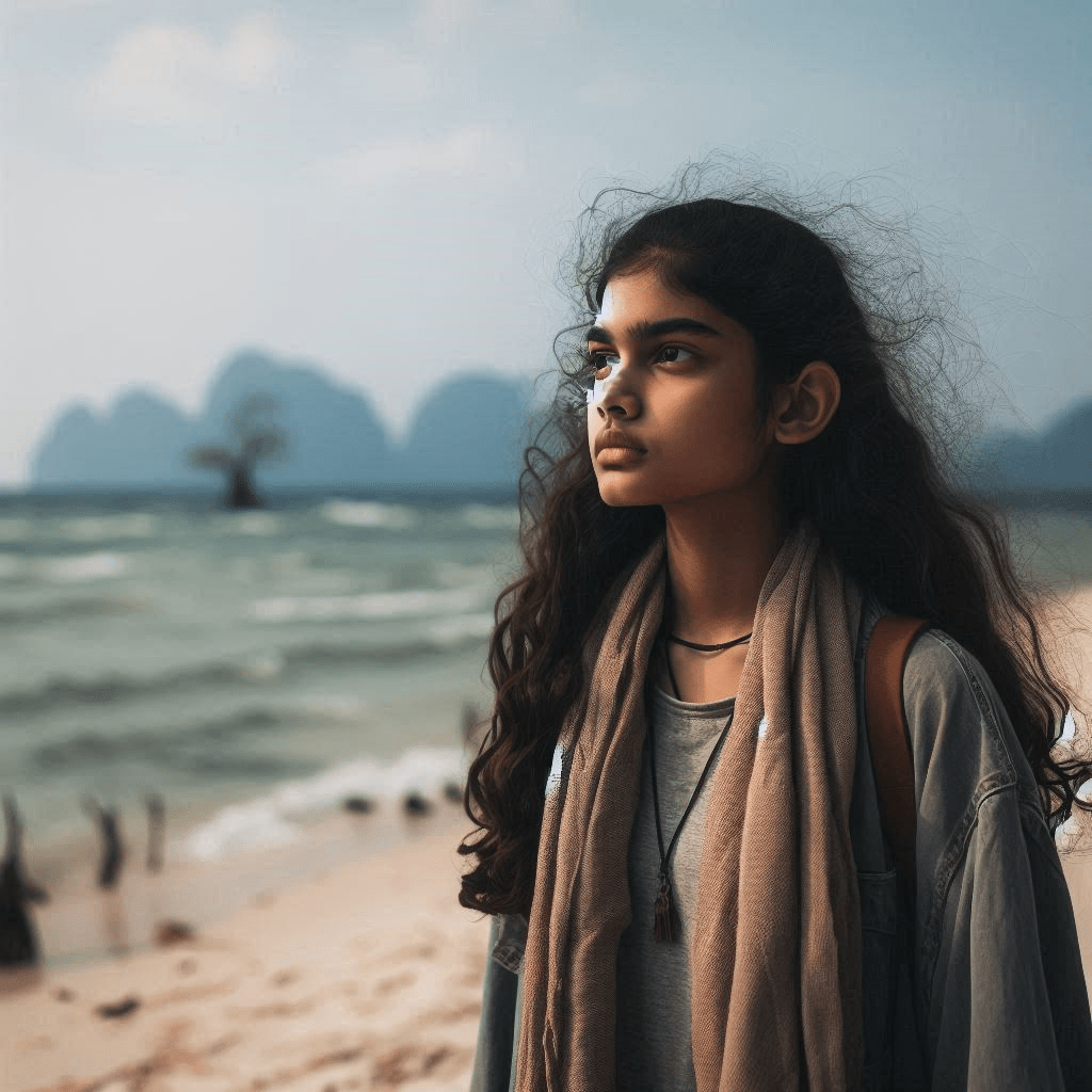 When I came back, I found that my schoolmates had already left in a boat. They were halfway through the crossing. I shouted and shouted, but no one heard me as they were already very far. I panicked! I had only school bag with me and I was stuck in this desolated island. I spotted a conch in the water and I quickly grabbed it and used it as a loudspeaker which could amplify my voice. It worked, but no one heard me, as I was wearing a brown shirt which camouflaged me, with the hills behind me.